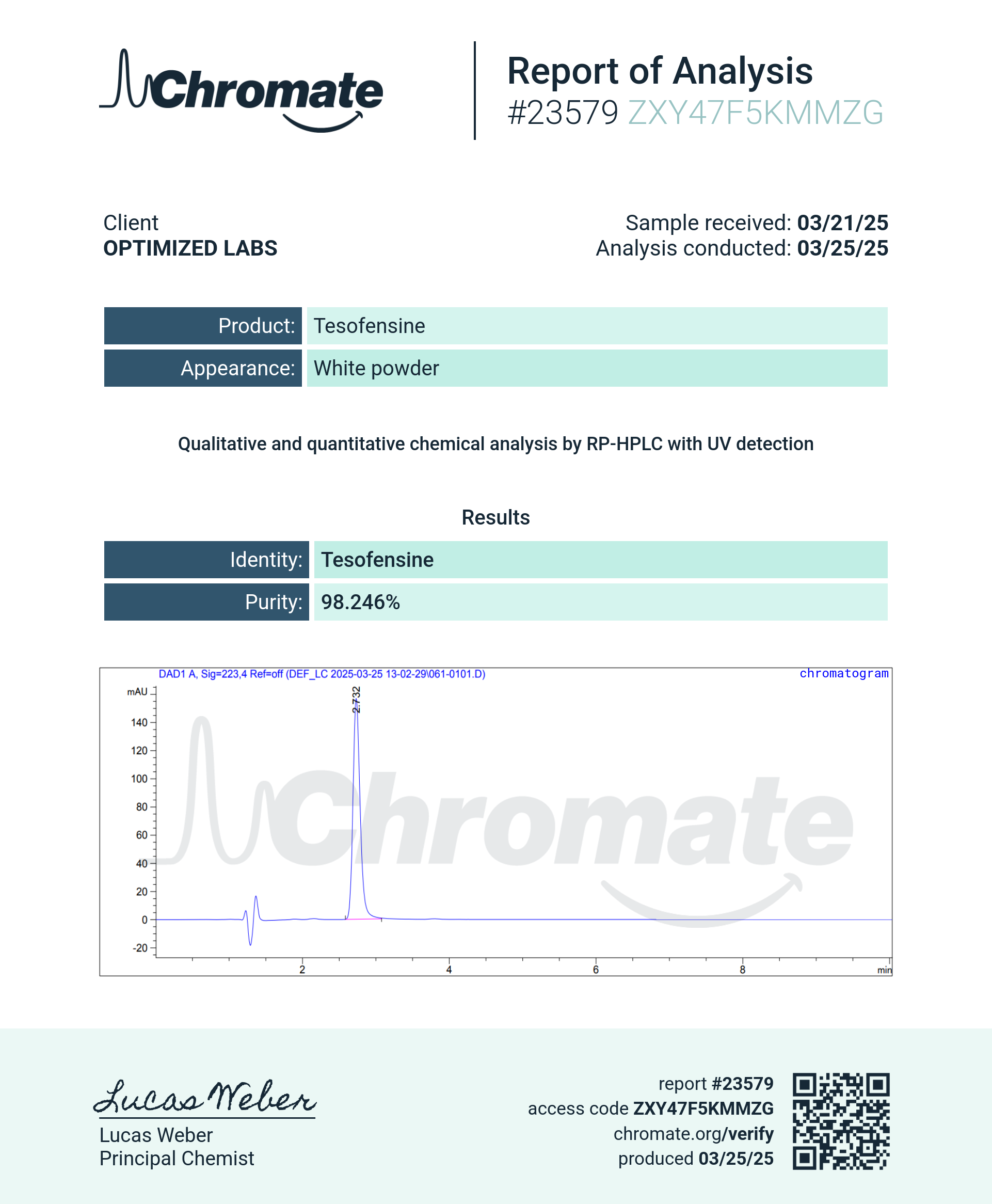 Tesofensine is sold for laboratory research use only. Terms of sale apply. Not for human consumption, nor medical, veterinary, or household uses.